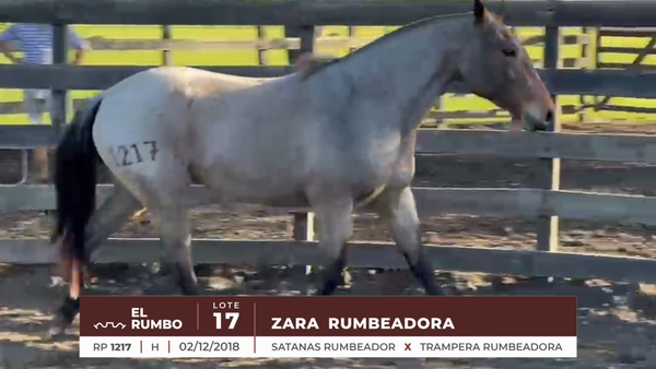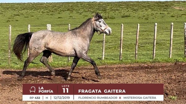 Tordillo fuerte, grande y con un PI muy diferente a lo habitual. Su madre, fue 4ta. en la Marcha de José Ignacio, viene por Almirante (Padrillo de Diego Landa) que no dió refugos. Es hna. de Aruera Gaitera, 5ta. en el 1er. Enduro de CPG. Sus movimientos son rendidores, rastreros y prolijos. Su padre es hermano de Tornado Rumbeador (Camp. Nacional de Enduro en 50 km y ganador de muchos Enduros de 80 km). Seguramente coraje no le falte!