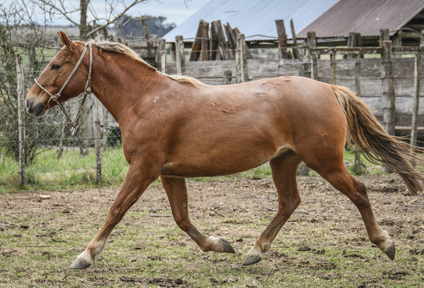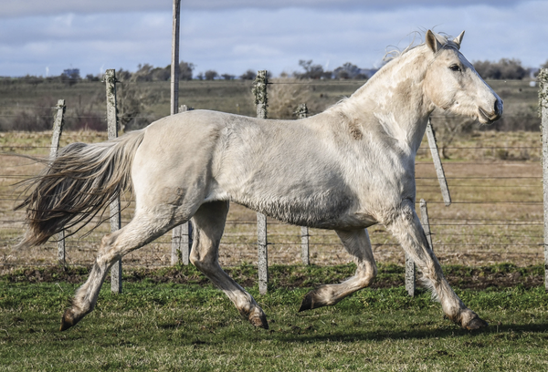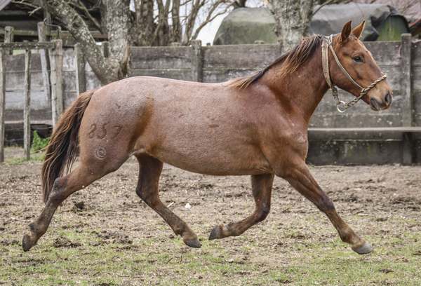 "Un potro completo a mi entender, buen físico, hueso y movimientos. Este Rosillo, hijo del Taliban con la Cascadita LF (Tiento Invierno x Matrera). Su madre es hermana de Cinco Talas Bagualcura (2do. puesto Marcha de Rocha 2000) es un pedigree que no falla. Además ella es baja de pulso y sus hijos que hemos probado, también. No lo deje pasar."