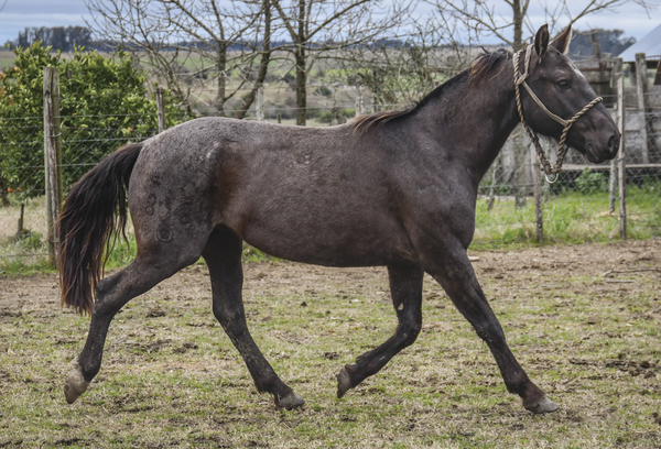 "Su madre Cuartetera Molles, no se pudo domar por un corte en las dos patas, la misma es muy linda yegua y de buenos movimientos. Hija de Parejera Molles ganadora de Marcha Melo 2001 y hermana de Pulga Molles 3er. puesto cat. menores Marcha Florida 2022."